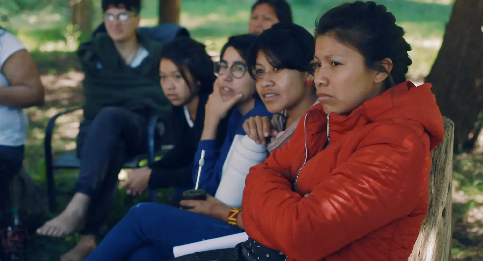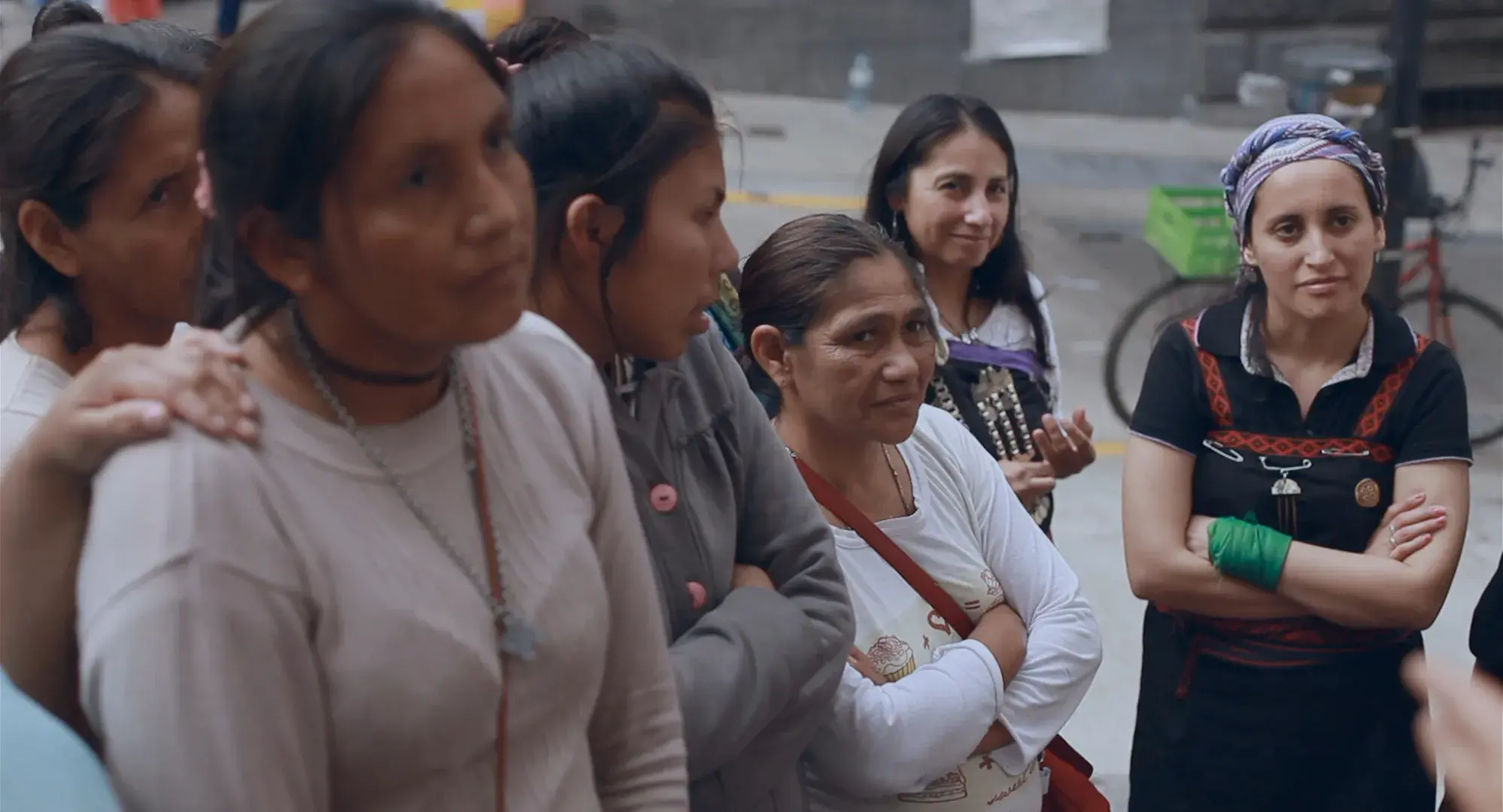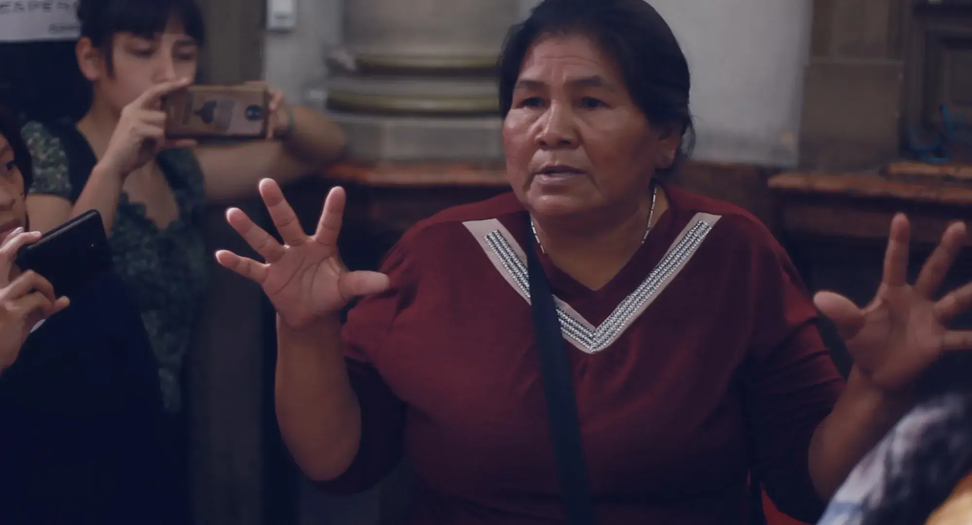 A medida que se fue profundizando el vínculo fui conociendo a su familia y a las demás mujeres indígenas que comparten con ella la lucha y comencé a filmar con ellas, no muy clara de cuál iba a ser el hilo narrativo del film. Cuando comenzaron a pensar en realizar la ocupación pacífica al ministerio del interior para visibilizar sus reclamos históricamente ignorados decidí acompañarlas en el proceso. Así fue que acompañé registrando la acción directa que realizaron 23 mujeres indígenas autoconvocadas de territorios en conflictos, y estuve con ellas los 11 días de la ocupación en octubre el 2019. Este hecho se convirtió en el relato central de la película, y reflejaba claramente en situaciones concretas todos los temas, conflictos y luchas que han acompañado la existencia de las mujeres originarias desde la llegada del invasor. Cada escena era un eco dentro de otro eco, escenas repetidas de manera interminable desde hace más de cinco siglos. Allí las flores nativas una vez más se rebelaban contra 500 años de despojo y opresión
